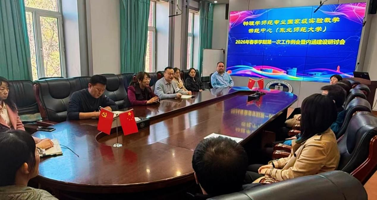2026年4月22日,物理学师范专业国家级实验教学示范中心(东北师范大学)(以下简称“中心”)召开2026年春季学期第一次工作例会暨内涵建设研讨会。中心主任李金环,物理学院主管副院长王春亮、孟巍,省级教学中心主任贾艳、副主任陈艳伟,中心各实验室主任及全体教师出席本次会议,中心副主任张岩主持。会议围绕中心春季学期重点工作部署、内涵建设推进等核心议题展开,明确了后续工作方向与重点任...