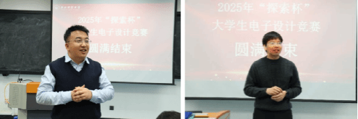 “探索杯” 大学生电子设计竞赛 作为学院全新打造的品牌赛事,旨在为本科生提供一个“从0到1”完整实现电子创意项目的平台 , 是学院“第二课堂”建设的新尝试、新探索 。首届比赛的成功举办,离不开各位指导老师的无私付出和同学们的积极参与,不仅为学生提供了一个高质量的实践交流平台,也 为 推动学院创新型、复合型人才的培养工作 发挥重要作用 。未来 , 期待 能有更多同学参与进来,探索物理 与电子信息 的奥秘, 学以致用,实业报国 !
