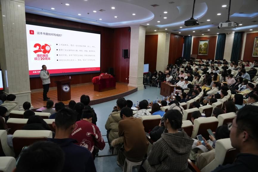 在主题分享中,戴安平校友以“自胜者强——一名创业者的心路与信条”为题,结合文集中的人生理念,分享了从师大求学到创业深耕的心得体会,鼓励学子扎实专业、坚守价值,发言真挚,引发共鸣。在随后的互动中,同学们围绕学业、职业与成长等话题踊跃提问,戴安平校友结合自身实践给予了细致解答。活动最后在签名赠书与合影中落下帷幕。