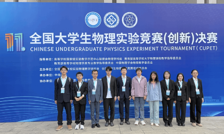 2025年11月21日至23日,第十一届全国大学生物理实验竞赛(创新)决赛在湖南长沙成功举行。该竞赛是在高等学校国家级实验教学示范中心联席会物理学科组、教育部高等学校大学物理课程教学指导委员会、教育部高等学校物理学类专业教学指导委员会和中国物理学会物理教学委员会指导下,由全国大学生物理实验竞赛组委会和全国高等学校实验物理教学研究会主办,《物理实验》杂志和高等教育出版社物理分社协办。本届竞赛由中南大学承办,全国700余所高校3260支预赛队伍参赛,参赛数量再创新高,其中331所高校750支优秀代表队晋级决赛。东北师范大学物理学院队伍由学院教师贾艳、陈艳伟带队,凭借参赛学生卓越表现,斩获3项一等奖、2项二等奖、2项三等奖的优异成绩,为学校争得荣誉。