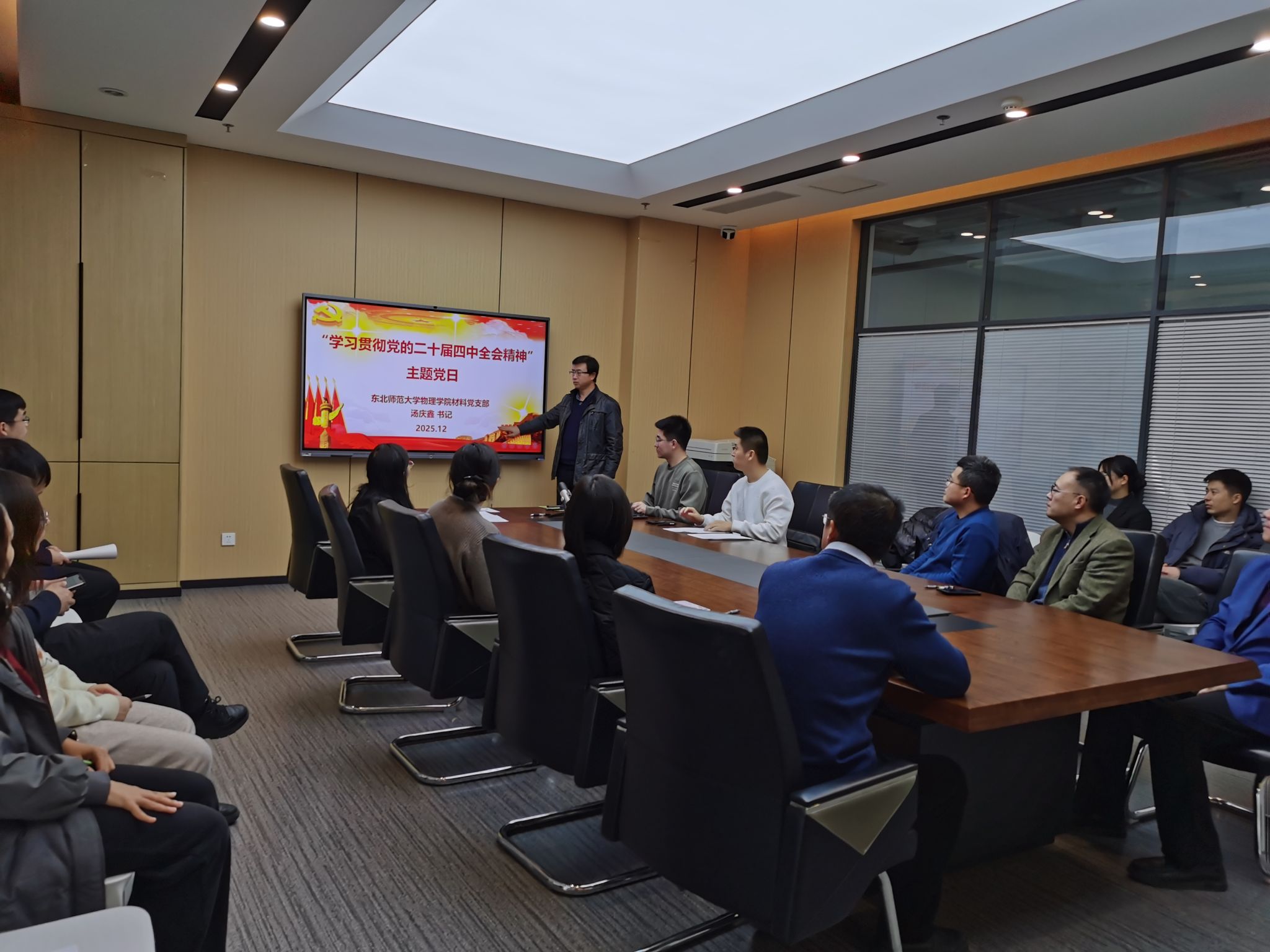 为持续推动学习贯彻习近平新时代中国特色社会主义思想走深走实,切实把思想和行动统一到党中央最新决策部署上来,2025年12月8日,物理学院材料党支部在惟真楼732会议室召开“深入学习《习近平谈治国理政》第五卷和党的二十届四中全会精神”专题理论学习会暨主题党日。学院院长付申成同志、支部书记汤庆鑫同志、支部委员会成员、支部党员同志参加了此次活动,活动由支部副书记张守涛主持。