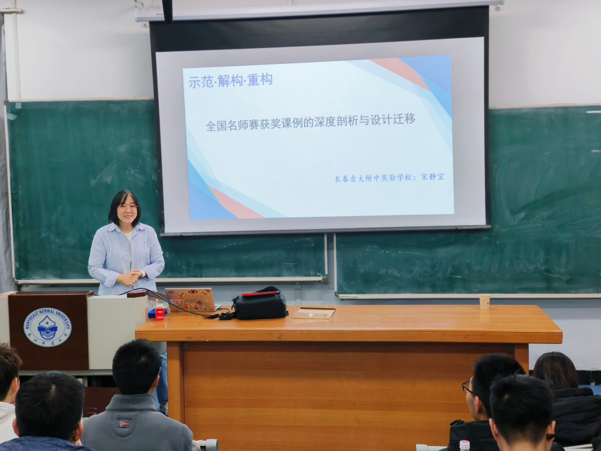 为培育学生扎根教育一线、奉献教育事业的真挚情怀,12月12日下午,物理学院举办2025年秋季学期“中学名师讲座”首场活动。本次活动特邀2025年全国名师赛一等奖获得者、吉林省高中物理专业委员会理事、长春吉大附中实验学校物理高级教师宋静宜,作题为“示范·解构·重构——全国名师赛获奖课例的深度剖析与设计迁移”的教学分享。学院师生代表120余人到场学习,现场座无虚席,气氛热烈。