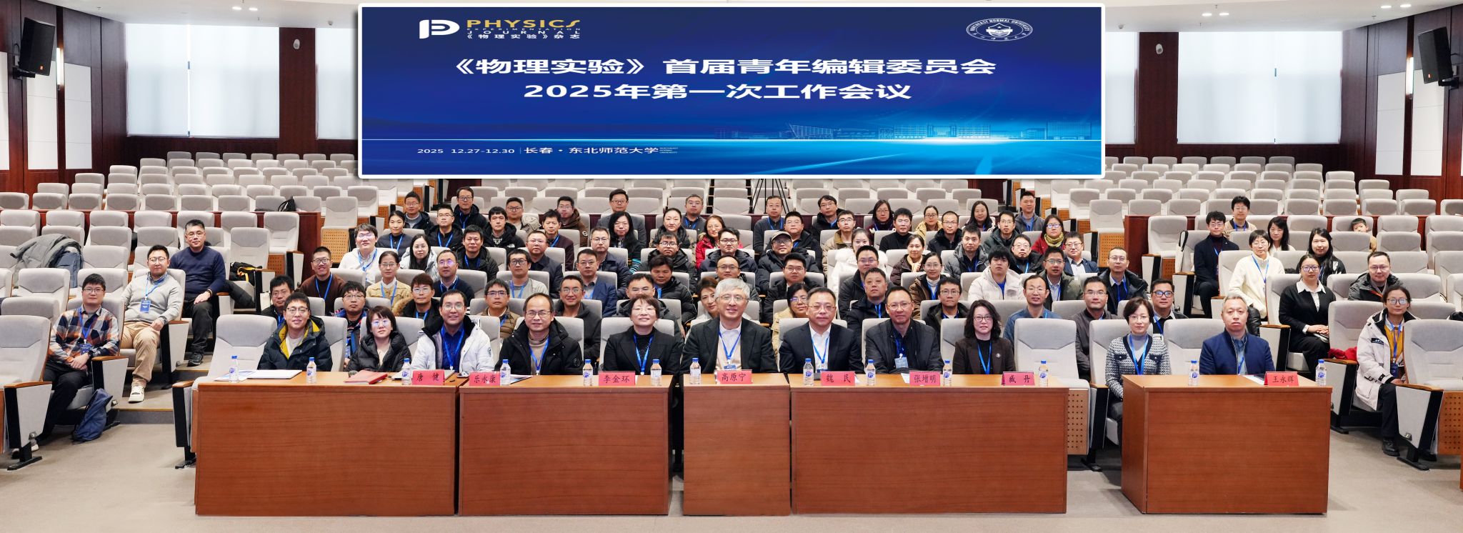 由《物理实验》杂志与东北师范大学物理学院联合主办的《物理实验》首届青年编辑委员会2025年第一次工作会议,于2025年12月27—30日在长春东北师范大学成功召开。我校副校长魏民教授,《物理实验》主编高原宁院士(北京大学),执行主编李金环教授(东北师范大学),副主编张增明教授(中国科学技术大学)、乐永康教授(复旦大学)、唐健教授(中山大学),首届青年编委,我院党委书记臧丹、院长付申成教授,以及《物理实验》编辑部等全体工作人员等近百人出席会议。
