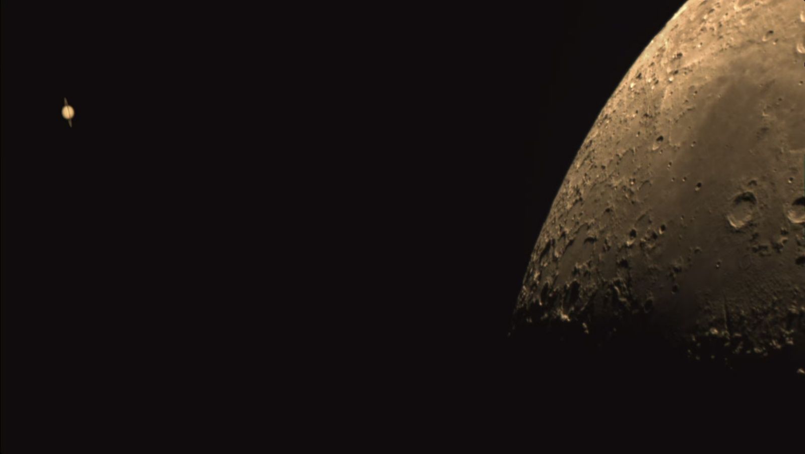 本次观测捕捉的“土星合月”,是指土星与月球角距离较近(通常小于5度)时形成的天文现象。此时两大天体在夜空中交相辉映,月球的银辉与土星的淡金色光晕及纤细光环形成鲜明对比,极具视觉冲击力。值得一提的是,这一现象观测门槛较低:使用高倍双筒望远镜或入门级天文设备,即可同时清晰观测到月面细节(如环形山、月海)与土星光环。