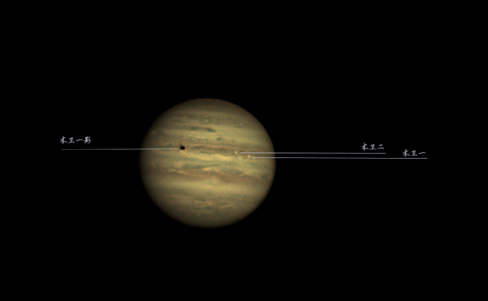 本组影像记录了木星及木卫一凌木星和木卫二凌木卫一天文现象。观测设备依目标适配:木星采用星特朗C8施密特-卡塞格林式望远镜搭配QHY585相机;木卫一凌木星与木卫二凌木卫一则使用星特朗C11望远镜与QHY715C相机。参数设置以最大帧率为核心,通过调节增益平衡噪声与细节呈现,配合导星镜实现稳定追踪。