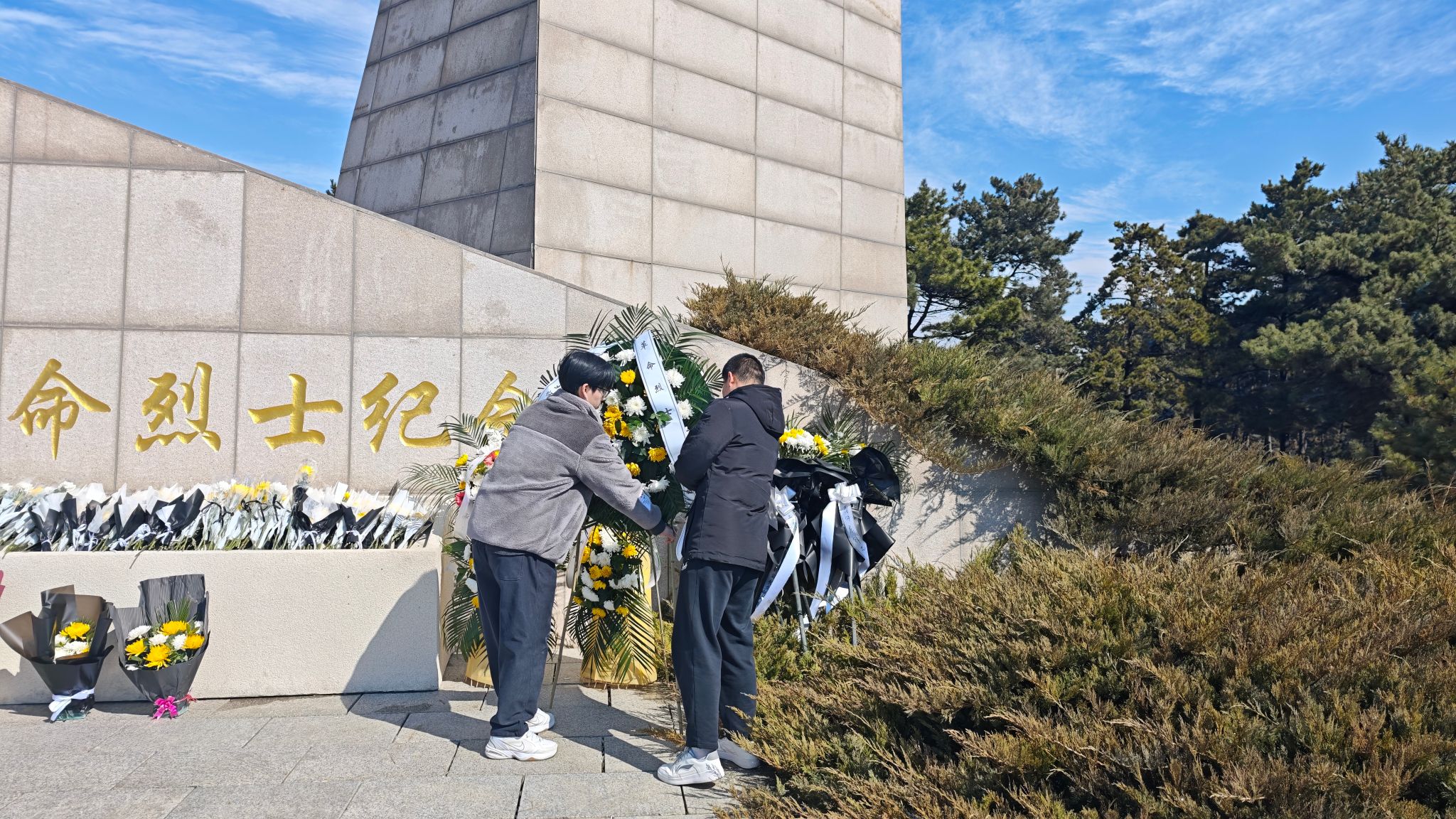 庄严缅怀,砥砺初心。上午9时30分,物理学院40名师生党员和入党积极分子代表,身着素净衣装,怀着崇敬的心情,前往长春市革命烈士陵园进行线下祭扫。在革命烈士纪念碑前,全体师生肃立默哀,深切悼念为民族独立和人民幸福献出生命的英烈。学生代表敬献花圈,全体成员依次敬献白色菊花,并集体宣读活动主题誓词,表达继承先烈遗志、矢志艰苦奋斗的决心。祭扫仪式结束后,师生们集体参观了烈士陵园纪念馆,聆听了革命烈士不顾生死、英勇牺牲的动人事迹,上了一堂生动深刻的爱国主义教育课。