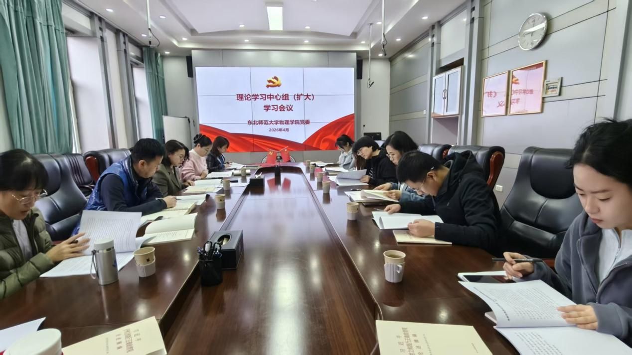 4月10日,物理学院党委在物理学院三楼会议室召开理论学习中心组(扩大)学习会议,学院党委委员、班子成员、党支部书记、工会委员、辅导员等参加会议。会议由学院党委书记臧丹主持。